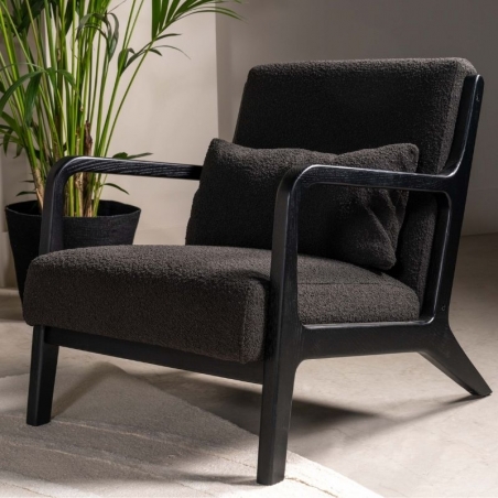 Ce fauteuil à bouclette noir offre un design moderne et élégant pour votre intérieur. Fabriqué avec du bois de frêne durable et un textile en polyester résistant à l'usure, ce fauteuil est facile à entretenir et conçu pour durer. Avec sa touche chaleureuse et naturelle et son toucher doux et confortable, il est parfait pour se détendre après une longue journée. Un choix intemporel pour votre maison.